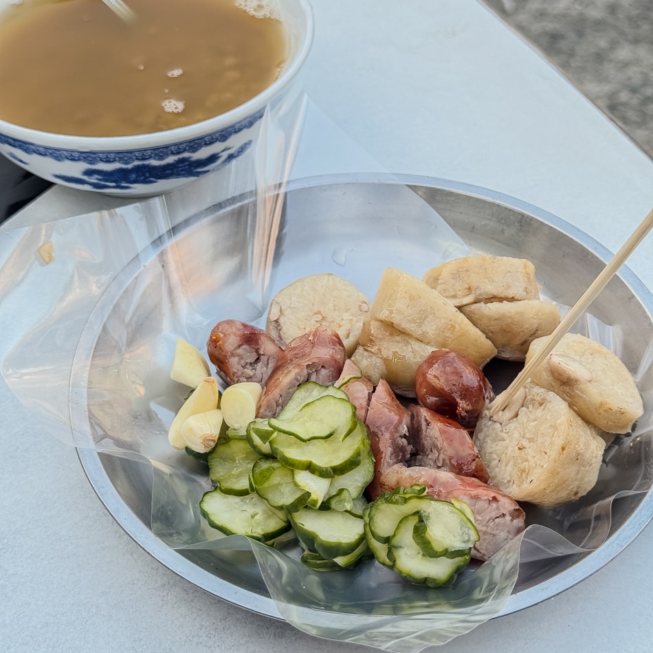 大腸:以糯米包裹花生與調味料,口感 Q 彈不軟爛,外皮微焦香,單吃或配香腸都很對味。