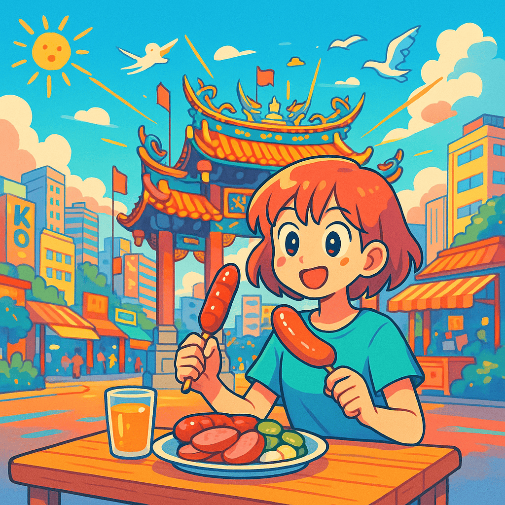 - 「保安宮前這間香腸真的無敵好吃,配黃瓜超加分!」
