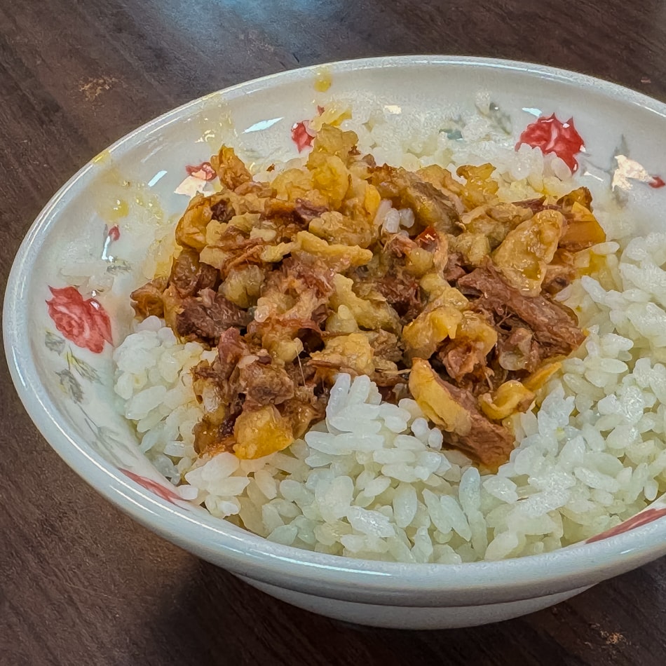 肉燥飯的肉燥是用牛肉製作,帶有豐富膠質,口感偏甜帶點滷汁的鹹香,搭配粒粒分明的白飯,簡單卻耐吃。