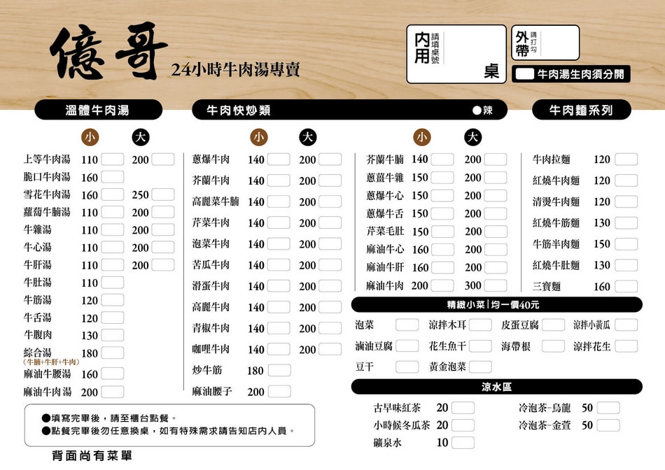 三、億哥牛肉湯菜單