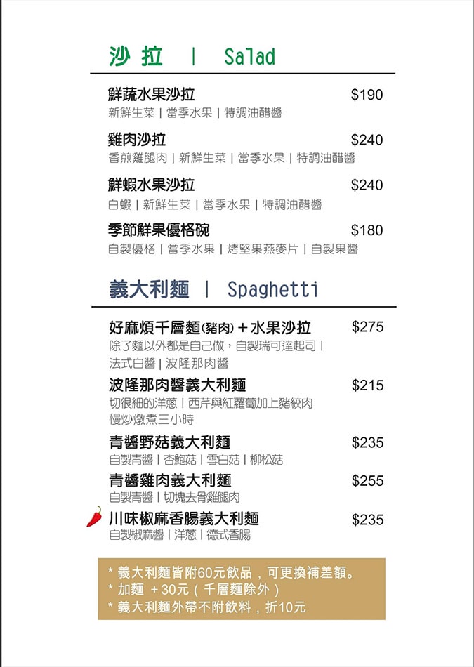 游李家提供多種健康輕食與早午餐選擇,菜單涵蓋自製優格、手工麵包、鮮果沙拉、特色茶飲等,符合現代人追求健康飲食的需求。