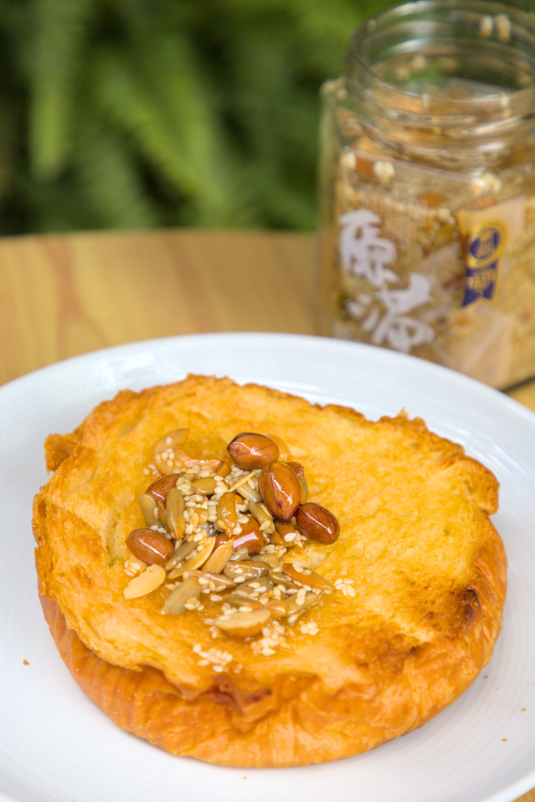 五仁胡麻果油走日式胡麻風,腰果、杏仁片、花生、葵瓜子、白芝麻加在一起,香氣溫潤、帶點甜。清爽派和沙拉愛好者很適合。